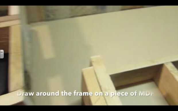 Tienes un par de opciones aquí. Como tenía una hoja de 3mm MDF ahí, dibujaba alrededor de la parte posterior del bastidor principal en MDF y cortar con mi juego.