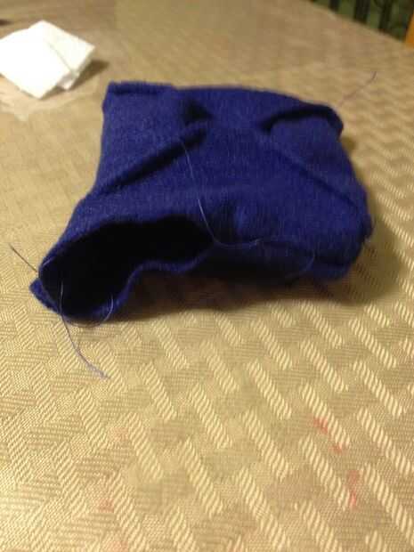 En primer lugar, pliegue ligeramente uno de los dos cuadrados grandes en un triángulo. Hacer luz coser sobre un centímetro desde el pliegue. Intenta hacer un hueco en el centro de 1 pulgada de largo. La plaza se despliegan. Continuar con la otra mitad. Una vez que termines, la otra gran plaza y a un lado, coser una pulgada desde el lado como se muestra en la segunda foto. Hacer lo mismo con dos partes más. Usted debe terminar con un lado abierto como en el cuadro 3. Luego, coser el lado pasado a mitad de camino. Entonces debe buscar como cuadro 4. Después, la materia. Asegúrese de no rellenar demasiado o tienes una bola extraña en lugar de un techo TARDIS. * Puntada de resbalón una vez que haya relleno lo, lo closed.*