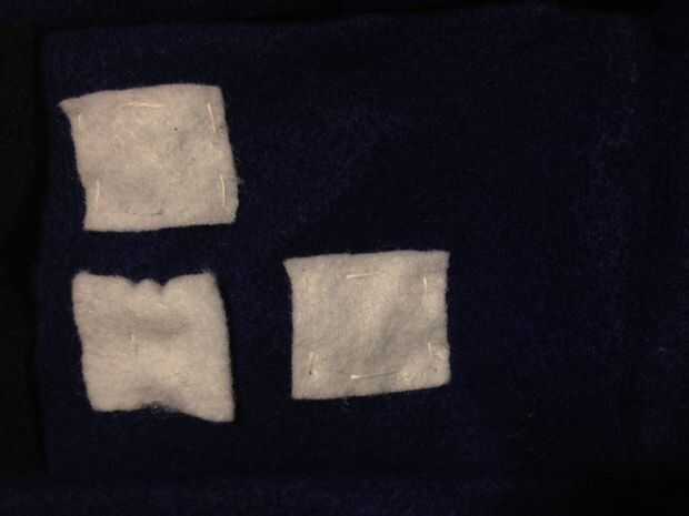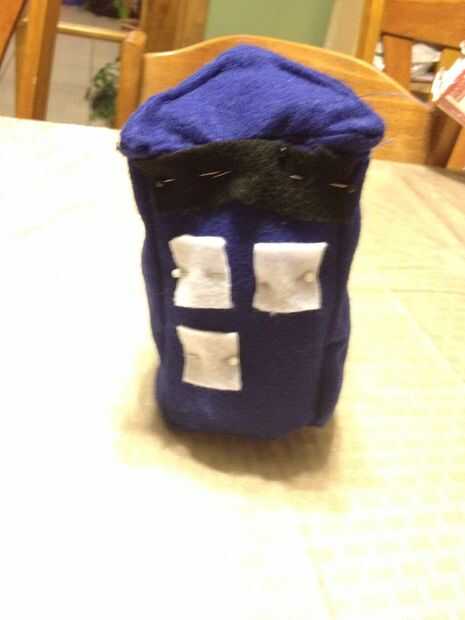 realmente no importa cómo coser el windows o el símbolo como coserlo pegado al lado TARDIS. Fotos 2 y 3 muestran cómo cosí el windows *. También puede caliente pegamento la señal (esto debe ser para propósitos de la exhibición solamente) agrega detalles con pintura puffy.