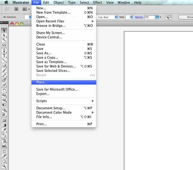 3. use el comando "colocar" (debajo de archivo > colocar) para insertar el logotipo de hecho en el paso anterior. El archivo ya debe estar preparado con un ancho de línea correcta, pero si no, asegúrese de que los elementos que desee a "vector corte" tienen un grosor de línea de .001pts.