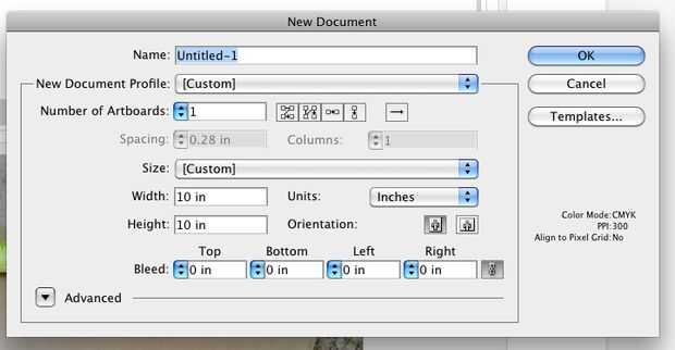 2. crear un nuevo archivo en Adobe Illustrator define las dimensiones de su material