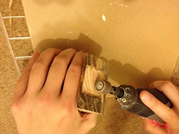 1. usando la herramienta rotatoria, hacer un bolsillo bruto, utilizando el borde del cañón lija para limpiar los bordes. Tratar de hacer el bolsillo aproximadamente la profundidad de tu acrílico (el mío era 1/8")