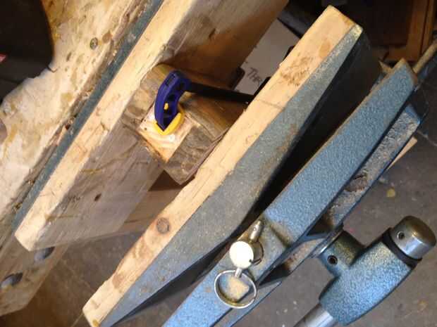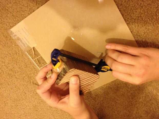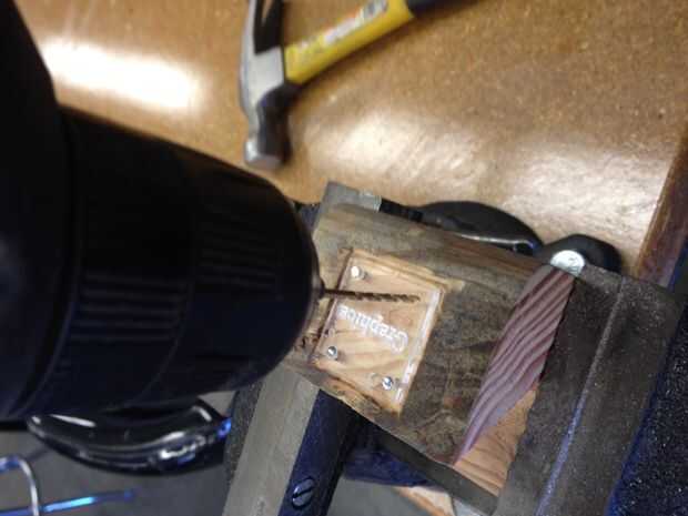 4. Fije todo el asunto en un vicio (no puede utilizar taladro porque la abrazadera pueden interferir con la tabla)