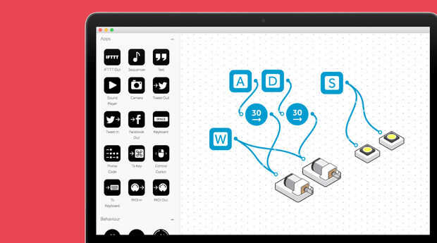 3. arrastrar y soltar los motores y los LEDs en la lona, esto va a ser rad!