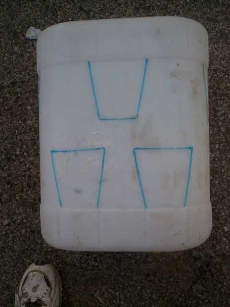 La marca de donde quiera los agujeros a la jarra, medida de acuerdo con el tamaño botella/vaso de plástico que tiene. Me aseguré de mina fueron escalonado, por lo que los cuatro lados son diferentes. (Fotos #3,4,5)