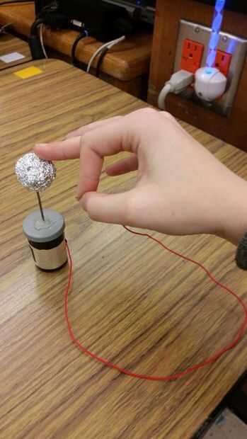 Recargar la jarra de Leyden. Agarrar el extremo del cable con su pulgar y el dedo índice, luego con tu dedo medio en la misma mano, toque el papel de aluminio. Usted debe recibir una pequeña!