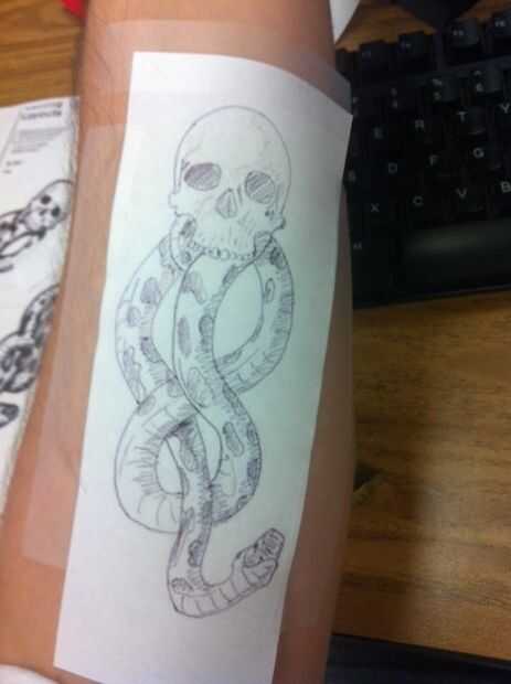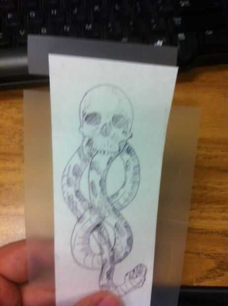Ahora toma tres pedazos de cinta, cerca del mismo tamaño de la imagen y poner en ambos lados y la parte superior de la imagen. y cinta adhesiva a su cuerpo donde usted quiere el "tatuaje".