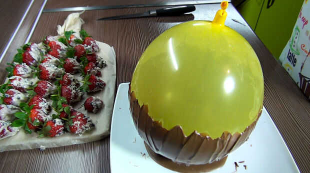 3. Sostenga el globo con chocolate en la nevera más de largo! Chocolate debe estar firme.