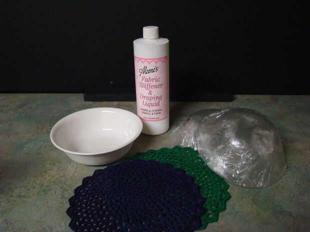 Fuentes: 1doily (hacer uno, o comprar uno en la tienda de dólar o busque uno en línea, etc.) Pegamento blanco (cualquier tipo hará) Un recipiente (aproximadamente el tamaño de la servilleta) Envoltura de plástico Taza extra