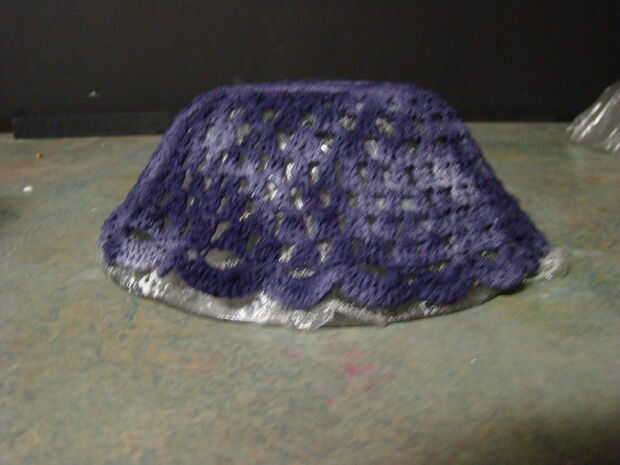 Enjuague sus manos de pegamento y estirar los lados de la servilleta hacia abajo los lados del tazón de fuente.  Puede hacer que los bordes de la servilleta rizado o liso o lo que quieras.