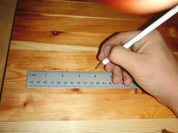 Comience marcando una línea de centro por la mitad de la duela de madera, luego marque el centro de esta línea, es donde pones tu brújula.