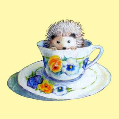 • Vaya a www.Spoonflower.com y la orden de 1 yarda de tela de hedgehog en taza con un fondo amarillo o azul.
