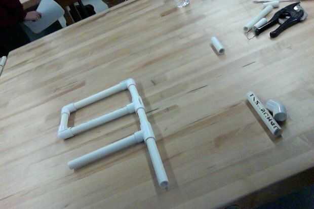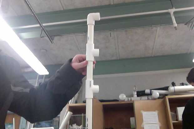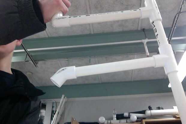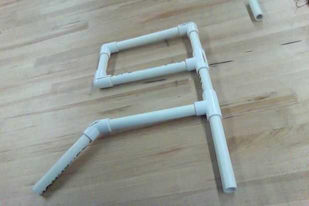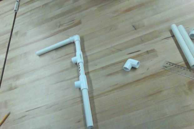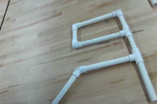 13) por último, conectar el tubo de PVC de 6 pulgadas con el ángulo de 45 grados creando su R