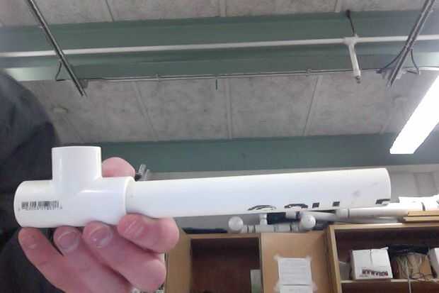 10) conectar otro tubo de PVC de 8 pulgadas para la salida de lado de la T y la salida lateral de 90 grados para crear el marco de la R