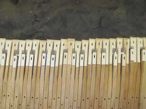 Tuve que profundizar un poco en la parte ancha de los agujeros de perno de equilibrio y de la madera había surgido un poco hacia un lado, y porque eran utilizados la mayoría de los pines claves había sido doblada por lo que la separación fue desigual en la parte delantera y en la parte posterior. Pude solucionarlo sobre todo girando y dobladora pines como prescrito por Hansing, utilizando pinzas con mangas protectoras de madera para que no les nick y sólo tuvo que cepillar un par de llaves que clase de demasiado juntos.