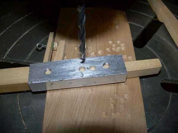 Comprobé el peso resultante en la parte delantera con unos pesos de muestras uniformemente espaciadas para cuatro pares diferentes de vecinos claves naturales y nítidas y acaba de trazar líneas que conectan las posiciones que había marcado hacia fuera. Hice una pequeña plantilla para perforar los agujeros exteriores de los conductores, con un clavo para sujetar la plantilla en su lugar, de corte y abrió la madera entre ellos con una sierra de sable que se tiraron en la jigsaw y cuadrados los laterales con un cincel. Presiona los pesos con un taladro y me había cortado el exceso con algún enjuague Cizallas de corte. Utiliza un tercer peso colocado mucho más cercano en el riel de equilibrio para llevar las llaves al peso final, pero colocado individualmente para compensar las diferencias de las anchuras de las teclas.
