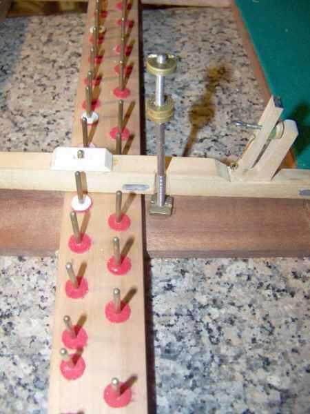 He quitado los rieles y relevado y había vestido de los extremos de las llaves para las palancas regulador que reunirse con ellos en los ángulos. He pulsado en los cables del anti-reflujo y pegados en sus cubiertas y luego ajuste la llave dip a 8.5 mm, agregando papel punchings en el riel frontal y pegando un paño tira el espesor adecuado en la parte inferior del riel underhammer. Un bloque calibrador hecho tan grueso como el dip requiere clave y con un labio como los cauls para pegar Marfil es útil seleccionar la rotura derecha.