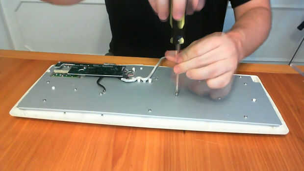 Comenzar por los bancos el teclado y quitar todos los tornillos que lo sujetan. Esto le permitirá eliminar el teclado del forro. Luego retirar el interior tornillos y los tornillos que sujetan a la placa de circuito. Esto le permitirá quitar la circuitería interna del teclado.