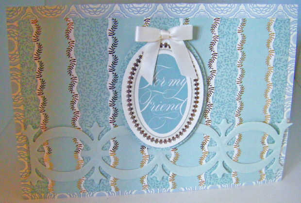 Esta tarjeta es tan bonita, un poco diferente pero es muy fácil cuando ves cómo he utilizado los ajustes morir tanto para el frente de la tarjeta y el inserto. Los dados de Anna Griffin recortes son tan versátiles y en 12inches en longitud adaptarán cardmaking y scrapbooking, he mostrado aquí cómo usted puede utilizarlos en cardmaking para crear este número!