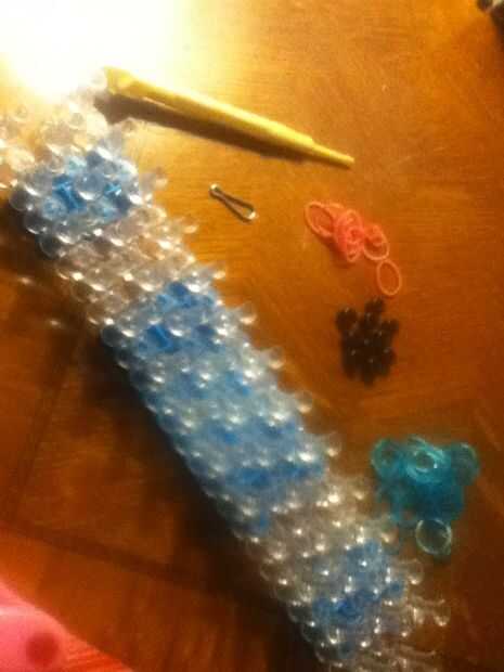 Los colores bandas que utilizaré azul y B bandas que utilizaré de color rosa. También utilizaré granos negros y un mosquetón.