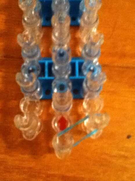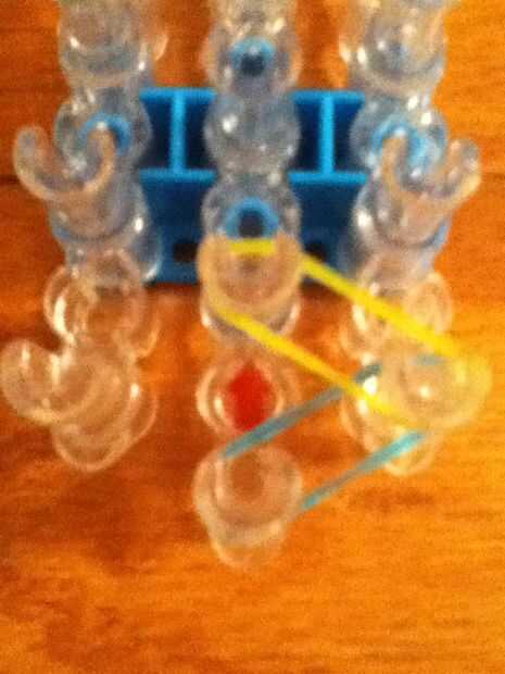 aquí hay un tutorial de una pulsera única triple.Paso 1: materiales Necesita 3 bandas de colores diferentes, su telar y su gancho.Paso 2: Poner las bandas en This step is easy! Simplemente poner las bandas en una fila y al revés por triángulos.Paso 3