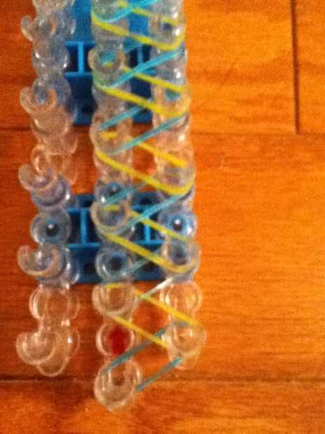 aquí hay un tutorial de una pulsera única triple.Paso 1: materiales Necesita 3 bandas de colores diferentes, su telar y su gancho.Paso 2: Poner las bandas en This step is easy! Simplemente poner las bandas en una fila y al revés por triángulos.Paso 3