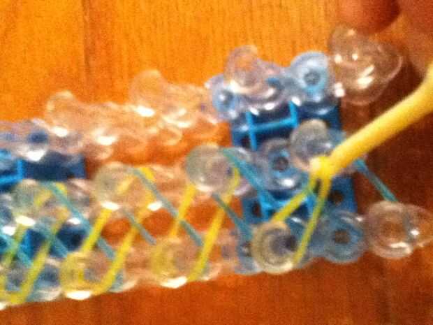 aquí hay un tutorial de una pulsera única triple.Paso 1: materiales Necesita 3 bandas de colores diferentes, su telar y su gancho.Paso 2: Poner las bandas en This step is easy! Simplemente poner las bandas en una fila y al revés por triángulos.Paso 3