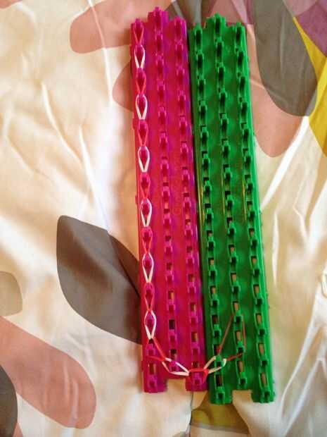 Paso 1: Selección de colores que usted desee Usted puede elegir tantos colores que desee.Paso 2: Obtener telar! Hacer cara de flecha lejos! No importa qué empresa es.Paso 3: Poner las bandas! Paso 4: Continuar paso 3 hacia arriba!Paso 5: Haz gancho!P