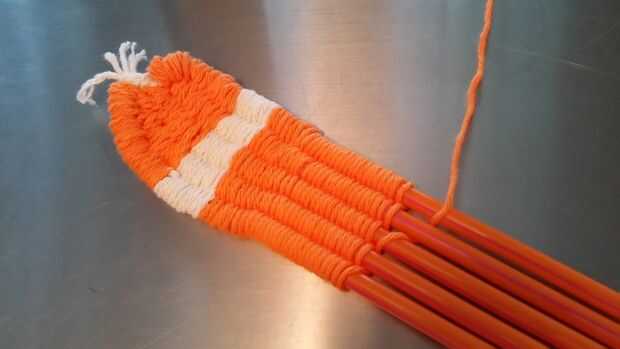 Al llegar al final de tus pajas, desata el nudo del resbalón en la parte inferior, tire la paja abajo cerca de la mitad de su longitud y luego rehaga el nudo del resbalón. Seguir tejiendo y hacerlo las veces que sea necesario hasta que su proyecto es la longitud que se necesita.