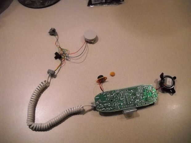 Teléfono elegí era casi imposible abrir. la base fue bastante fáciles gracias a un destornillador, pero la parte superior se ligan tan fuertemente, he tenido que quitar pedazos de él antes de pudiera torcer aparte. A partir de ahí, destornilla la placa de circuito del teléfono. Luego tuve todas las piezas necesarias para trabajar un teléfono.