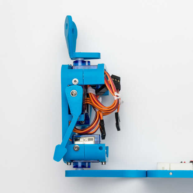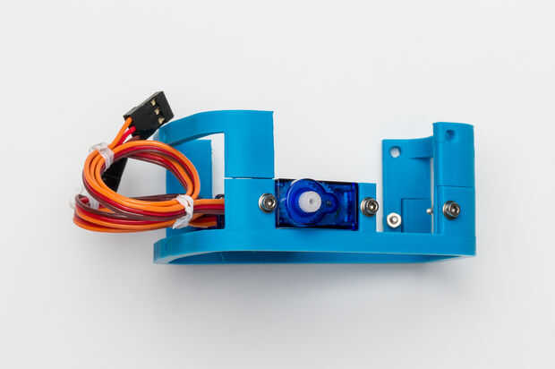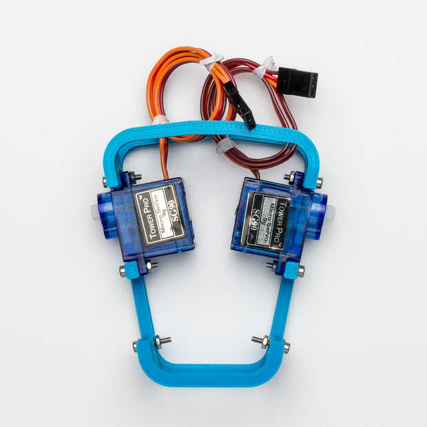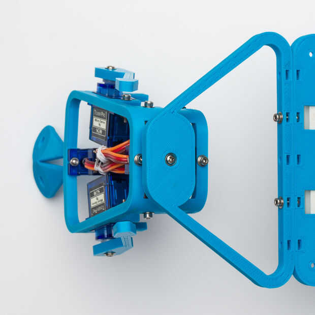 • Insertar brazos de Servo a bloques impresos: 'Cabeza', 'Brazos' y 'IoBot Base'.