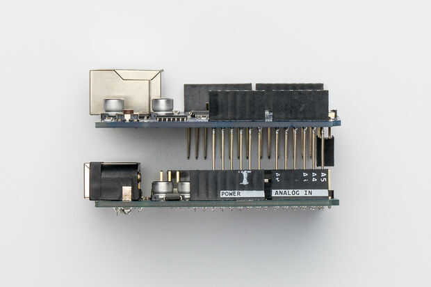 • Enchufe 'Ethernet Shield' sobre la 'placa Arduino'.