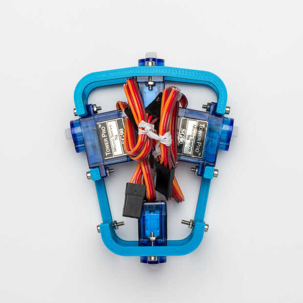 • Tornillo 'Nuevo cuerpo superior' con' frente' al mismo tiempo al montaje del 'Brazo derecho' y la 'Izquierda brazo SG90 Servo'.
