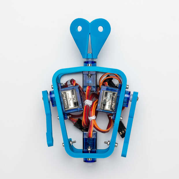 • Usando 'No 2 Taping tornillo 7mm longitud' (incluido con SG90), atornille ligeramente 'Brazos', 'Cabeza' y 'IoBot Base'. Más adelante en el paso 5 deberá fijar en la posición correcta.