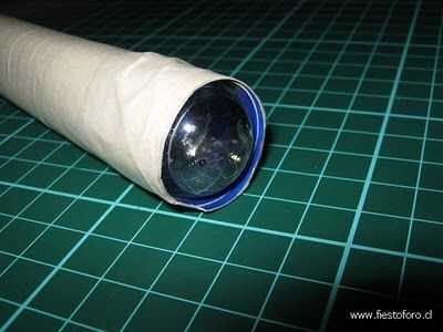Este es el teleidoscope terminado. Se puede ver la lente, una bola de cristal transparente simple.