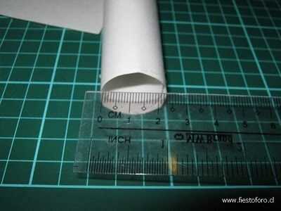 Este será el diámetro de la teleidoscope, pero primero tenemos que cortar y arreglar los espejos. Como el diámetro es de 2 cm, necesitamos poner dentro de este tres espejos dispuestos formando una estructura triangular, que puede verse en la cuarta foto abajo.