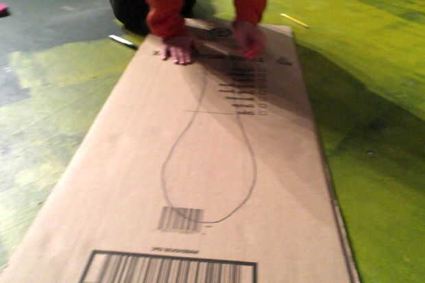 Trazar la forma de la horquilla en el rectángulo de cartulina (primero con lápiz y luego con rotulador). Hacer que la horquilla de 3 pies de largo. Luego cortado en forma de horquilla con un cuchillo o exacto.