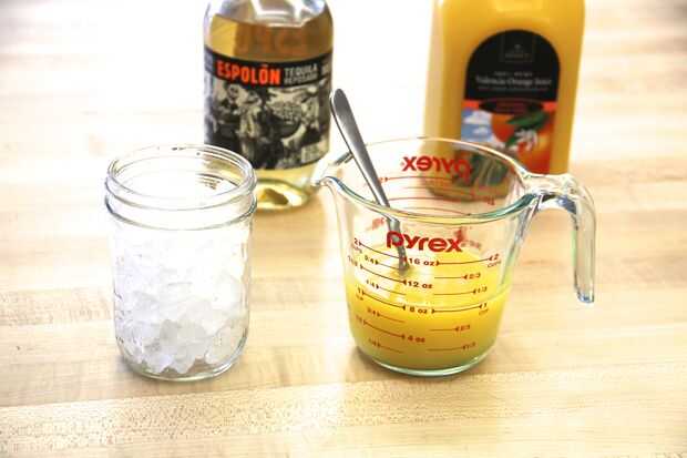 Paso 2: Mezclar el jugo de naranja y Tequila