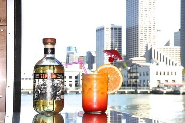 yo fui inspirado por la belleza de Tequila Sunrise, y pensando que tal vez puedo hacer algo para rendir homenaje a la gran creatividad, luego el Tequila amanecer subió conmigo.El agua tónico contiene quinina, brilla bajo luz UV. Así que usar una luz