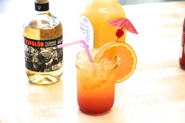 cómo hacer un TEQUILA SUNRISE coctelHola todos hoy te voy a mostrar cómo hacer el Tequila Sunrise coctel.2oz plata Tequila4oz jugo de naranjaSplash de granadinaCombinar el Tequila y el jugo de naranja en una coctelera con hielo. Agitar y verter en va