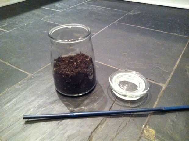 Después de tener bastante tierra en la botella o tarro, paquete de la tierra hacia abajo