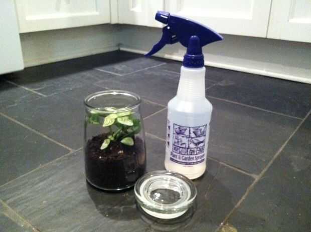 Para estar seguro, utilice un rociador para agua su terrario. Asegúrese de que su botella de spray es en "stream". De esta manera tienes más control donde pasa el agua. También con la parte "corriente" de la botella del aerosol puede apuntar a cualquier exceso de suciedad en los lados de la botella o frasco y lave lejos. Water su terrario con lentamente de 15 a 20. Si usted siente que necesita más o menos, vaya una cabeza. Sólo tiene que utilizar su mejor juicio sintiendo la humedad del suelo. Si usted no puede sentirlo porque la apertura de la botella o el frasco es demasiado pequeña, use menos arroja a chorros. Prestar especial atención al observar a través del vidrio en el suelo. Es un buen indicador de cómo es mojado el suelo es.