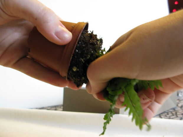 Ahora, tomar la primera planta y suavemente sin apretarlo, sostenga sobre la base de los tallos que salen de la olla. Utilice la otra mano para apretar los lados de la olla a medida que gire lentamente al hacerlo a la desaceleración de la planta. Menos estresante Ud. a las plantas ahora menos lo discordante es a ellos que se acostumbre a su nuevo entorno.