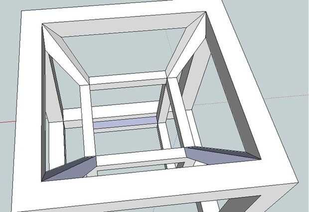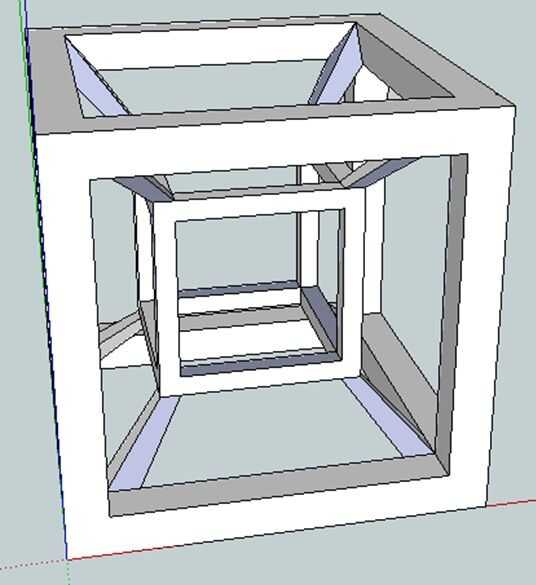 Utilice la herramienta de línea para conectar la esquina exterior del cubo interno a la esquina externa correspondiente del cubo exterior. Lo mismo para esquinas interiores.