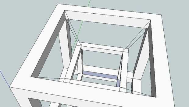 En primer lugar, por encima de 'cara' del cubo interior, delinear las patas - Ver imagen.