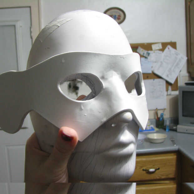 Hervir la pieza principal de la máscara. Esta parte puede ser complicada. Por lo tanto, por qué usaba la máscara del arte. Una vez maleable presione su cintra en la forma de la máscara. Esto puede tomar unos pocos van a hacer las cosas bien. Si obtienes una parte justo, prueba hirviendo entonces sólo las partes que desea fijar.