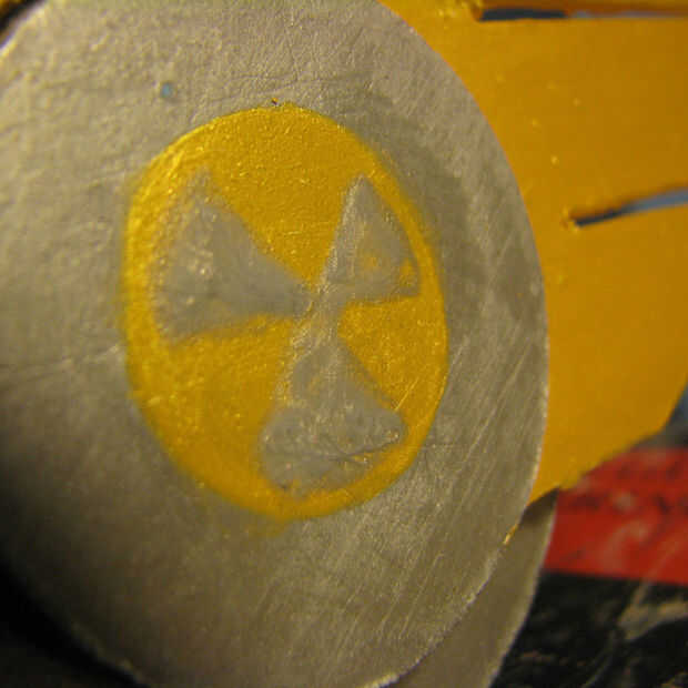 Pintar el símbolo radiactivo en sus círculos más pequeños. La mina con la mano, pero si eres un stickler para la precisión siempre puede hacer un mini patrón.