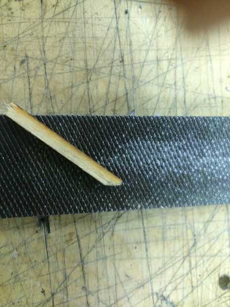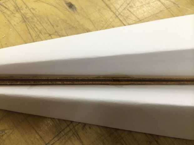Me cayó la columna madera interior y corte el sobrante. Luego pegué en varios lugares a lo largo de la espina dorsal con superglue, usted querrá pegar abajo bien en al menos cuatro localidades para no rasgar.