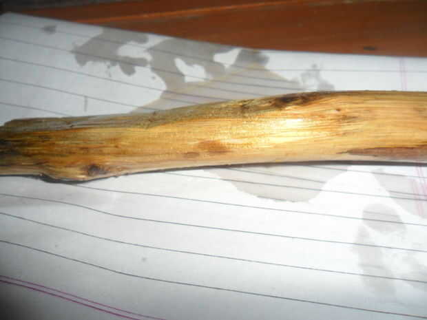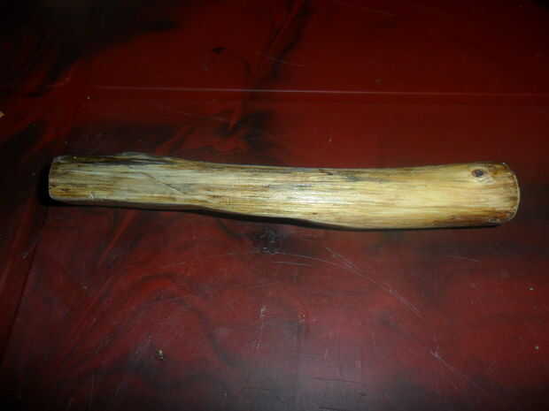 Si usted se está preguntando, la pieza de madera será el mango del kit de pesca. Primero arena, luego aplique una capa delgada de barniz y dejarlo secar para, como dice la can.