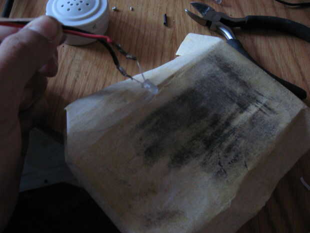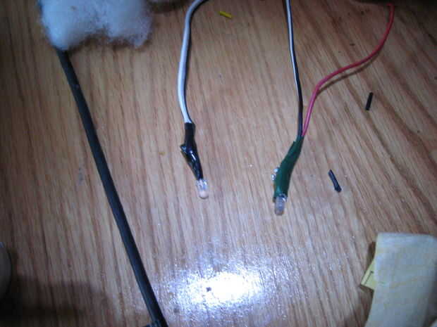 Esta parte es bastante simple, pero importante si desea que los indicadores. Si tenes LED claro, necesita lijar hacia abajo para que la luz se difunde en la superficie. Se trata de un efecto agradable y lo recomiendo. Además, tendrá que soldar cables a las patas de los LEDs. Te recomiendo con las puntas de corte desde el ladrillo de la energía, pero, si hay alguna razón que no desea, puede utilizar cualquier cable viejo.